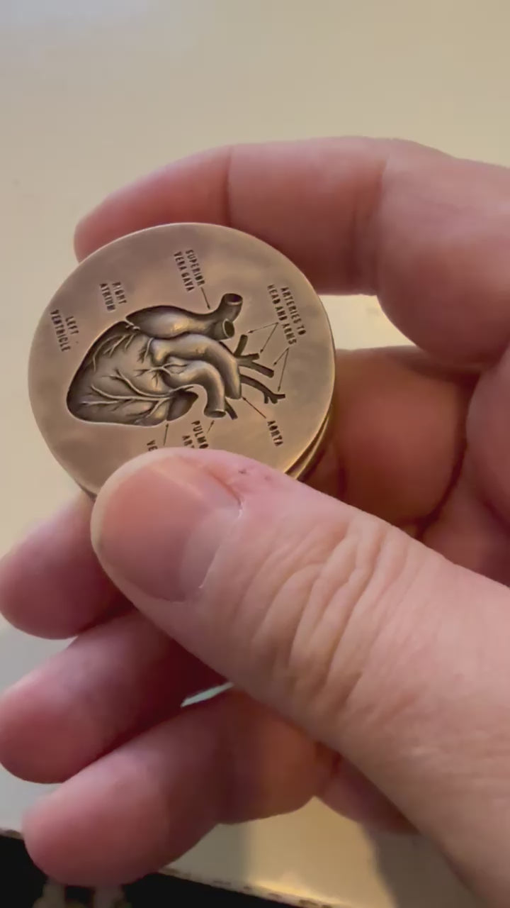 Do you lead with your head, your heart or just whatever seems right at the time? Whichever way you approach big decisions, these two 40mm brass discs comprise a solid fidget approximately 11mm in thickness. One side has the head and the other the heart. Sure to keep your mind free from distractions as you work on a big decision.