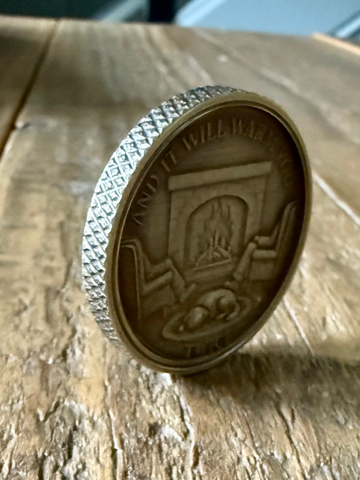Taking pleasure in what you're doing, can be as fulfilling, if not more so, than enjoying the fruits if those efforts. This 40mm W x 4mm D coin highlights the saying that embodies this idea and serves as a daily reminder to seek enjoyment in what you do.