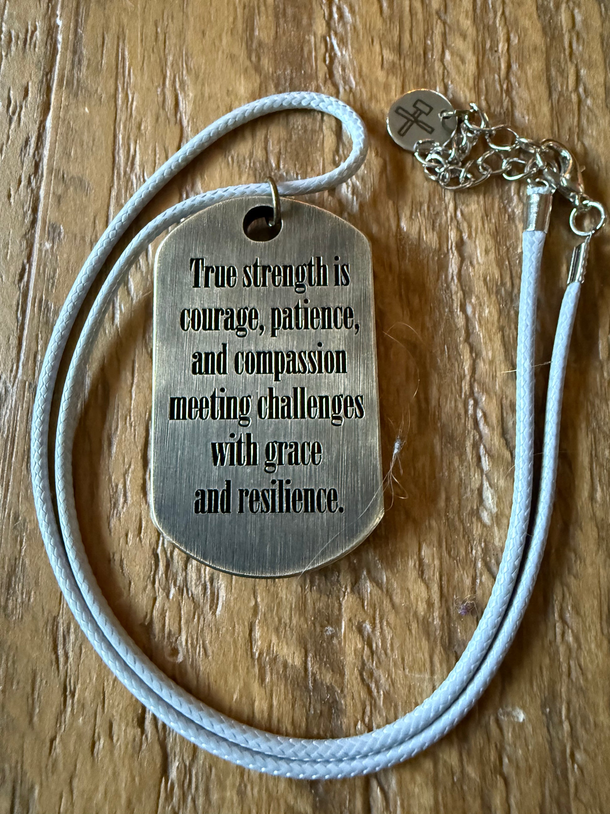 This 40mm L x 4mm D pendant features the Strength Tarot card. This Tarot signifies not just a common interpretation of what strength is, but also the traits of compassion, understanding and resilience; reminding the wearer that strength comes in many forms